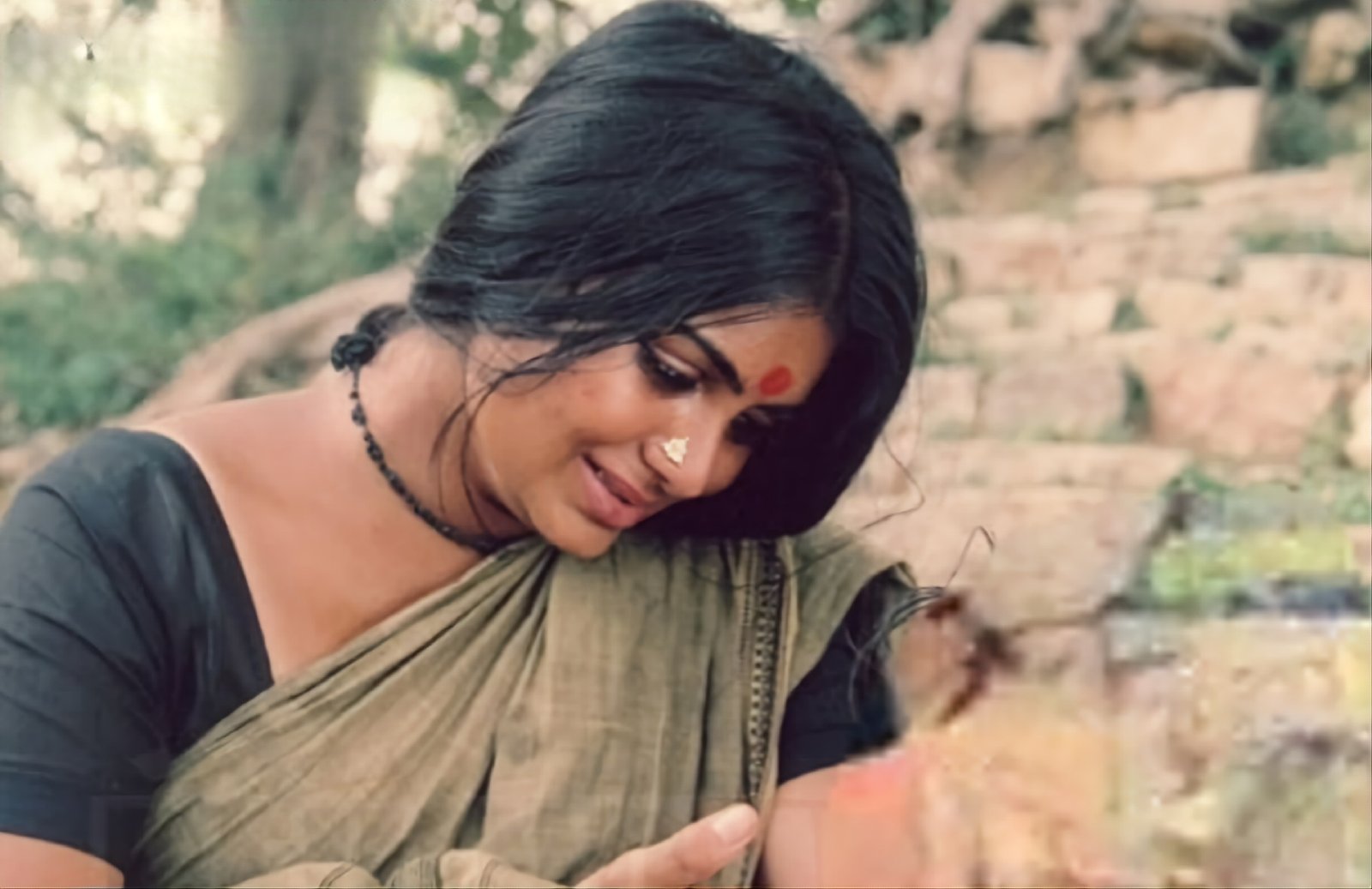 അപ്പോൾ ചുണ്ടിൽ വെച്ച കൈത്തലത്തിൽ നിന്ന് സാരി താഴെക്ക് ഊർന്ന് വീണു. വലത്തേ കൈയിലണിഞ്ഞ കറുത്ത ചരട് താഴേക്ക് അയഞ്ഞ് തുങ്ങിക്കിടന്നു. മുന്നിൽ മുകൾനിരയിലെ പൊഴിഞ്ഞ പല്ലുകളുടെ വിടവിലൂടെ നാവ് വെളിവാക്കപ്പെട്ടു.